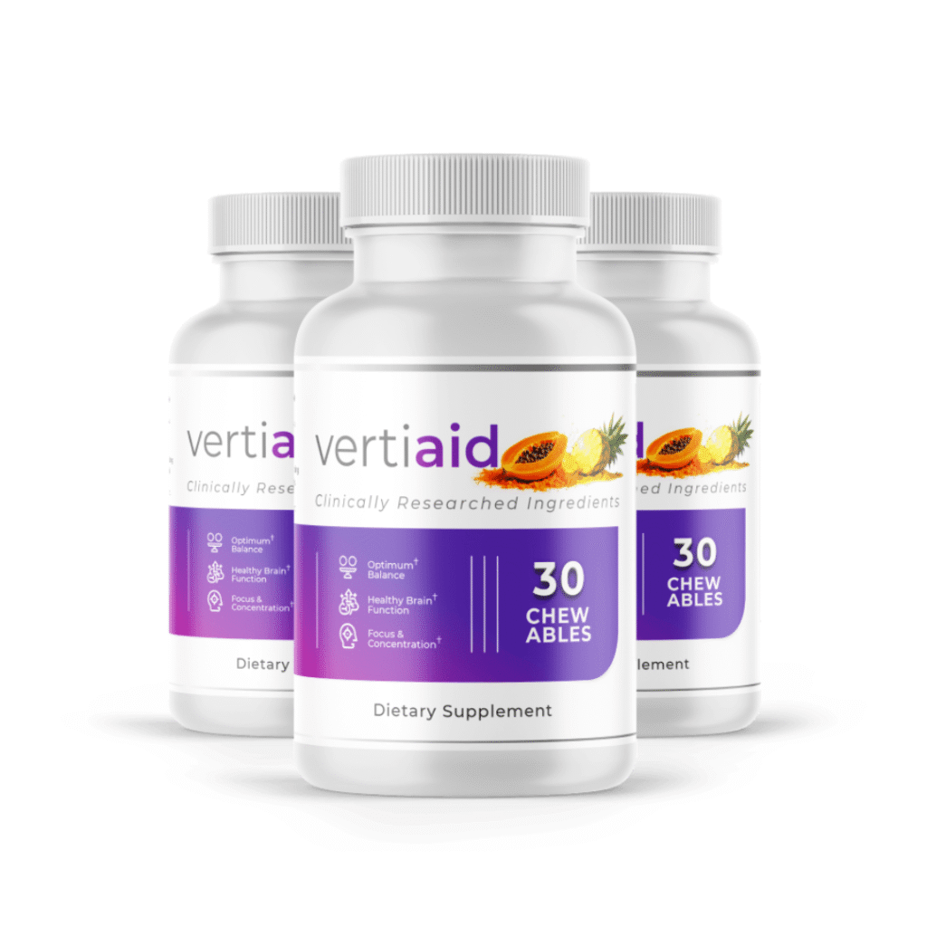 VertiAid is a chewable supplement designed to support inner ear health and enhance cognitive functions such as focus and mental clarity. Unlike traditional solutions that only mask the symptoms, it was created to address the root causes with a blend of carefully selected natural ingredients.