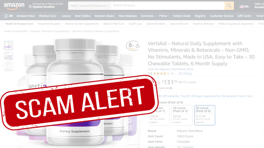 Unfortunately, many people are getting scammed when ordering the VertiAid supplement because they are not using the official website for their purchase. Many individuals are ordering VertiAid on Amazon due to its lower price and are receiving counterfeit bottles.